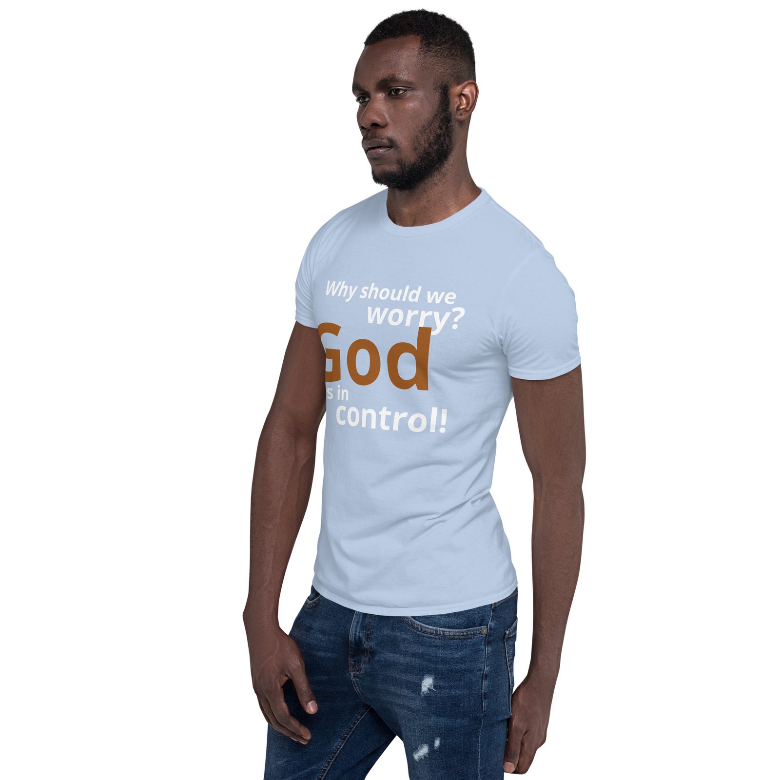 Wear a constant reminder that God is in control. This tee is made of 100% ring-spun cotton and is soft and comfy. The double stitching on the neckline and sleeves add more durability to what is sure to be a favorite!